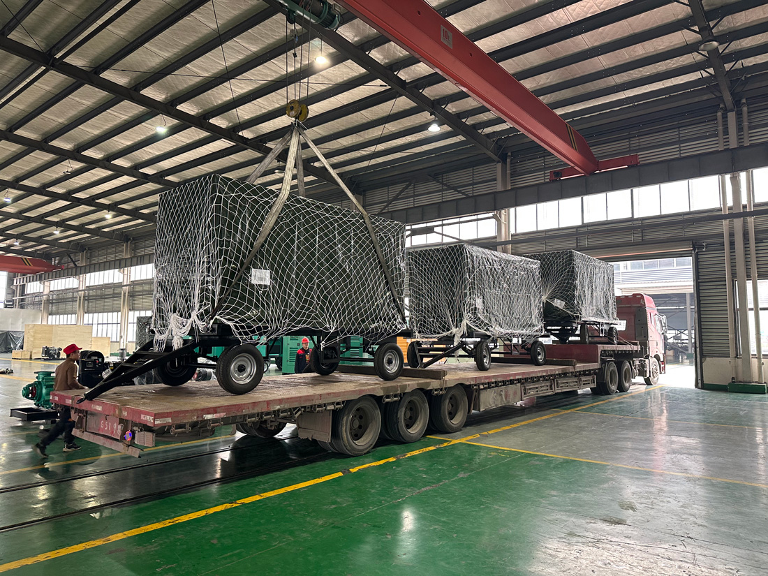 启运当日,五台拖车式机组在厂区内完成最后调试,涂装醒目、排列整齐。经检验合格后,它们将装箱发运,预计经过海上运输后抵达津巴布韦,交付客户使用。
